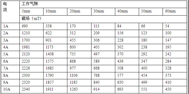 電磁鐵工作氣隙磁場是根據電磁感應原理,電流源對磁場線包供直流電流,并由導磁回路聚磁產生磁場,調節(jié)氣隙大小,改變極面直徑,調整工作電流均可改變工作氣隙磁場的大小強弱。